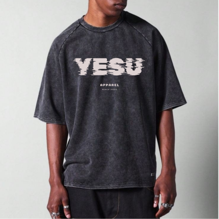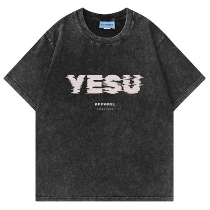 YESU Vintage Wash Oversized Tee – Charcoal Edition