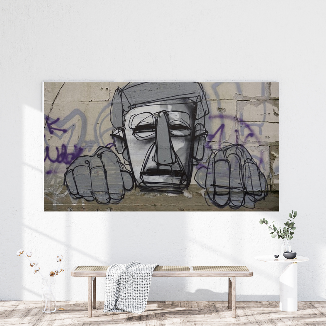 Bring bold, raw creativity into your space with Urban Gaze, a high-quality wall canvas that captures the essence of street art. The striking monochrome face emerging from the textured graffiti backdrop adds an edgy, modern touch — perfect for art lovers seeking an urban vibe.