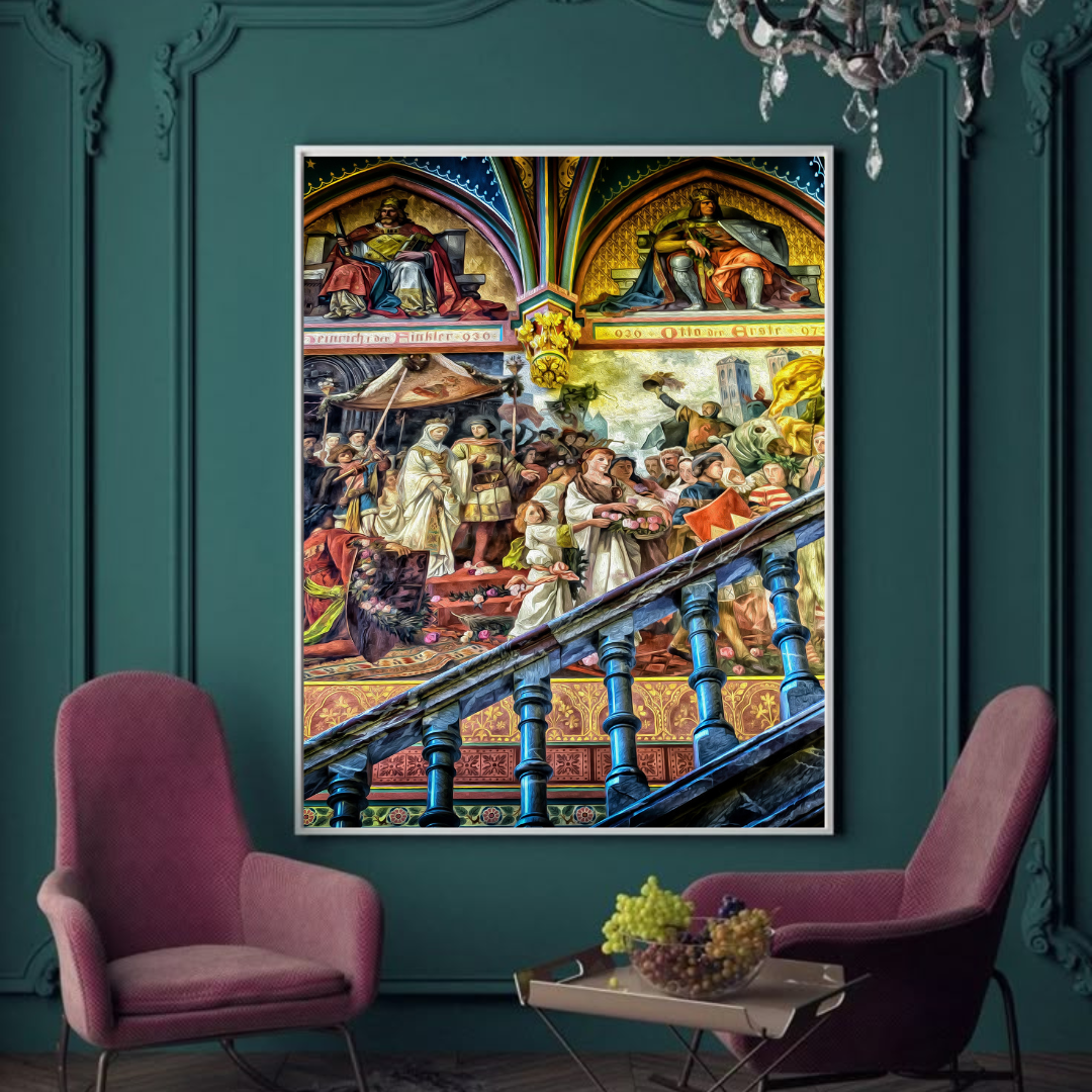 Step into a vivid historical tapestry with “Legacy of the Ages”, a breathtaking high-quality canvas print that encapsulates the grandeur of medieval civilization. Rich in detail and storytelling, this masterpiece blends regal authority, religious devotion, and the bustling energy of the people, all under the watchful gaze of noble rulers. The intricate architecture and bold colors bring a sense of timeless heritage, making this artwork a perfect statement piece for lovers of history, culture, and classical artistry.