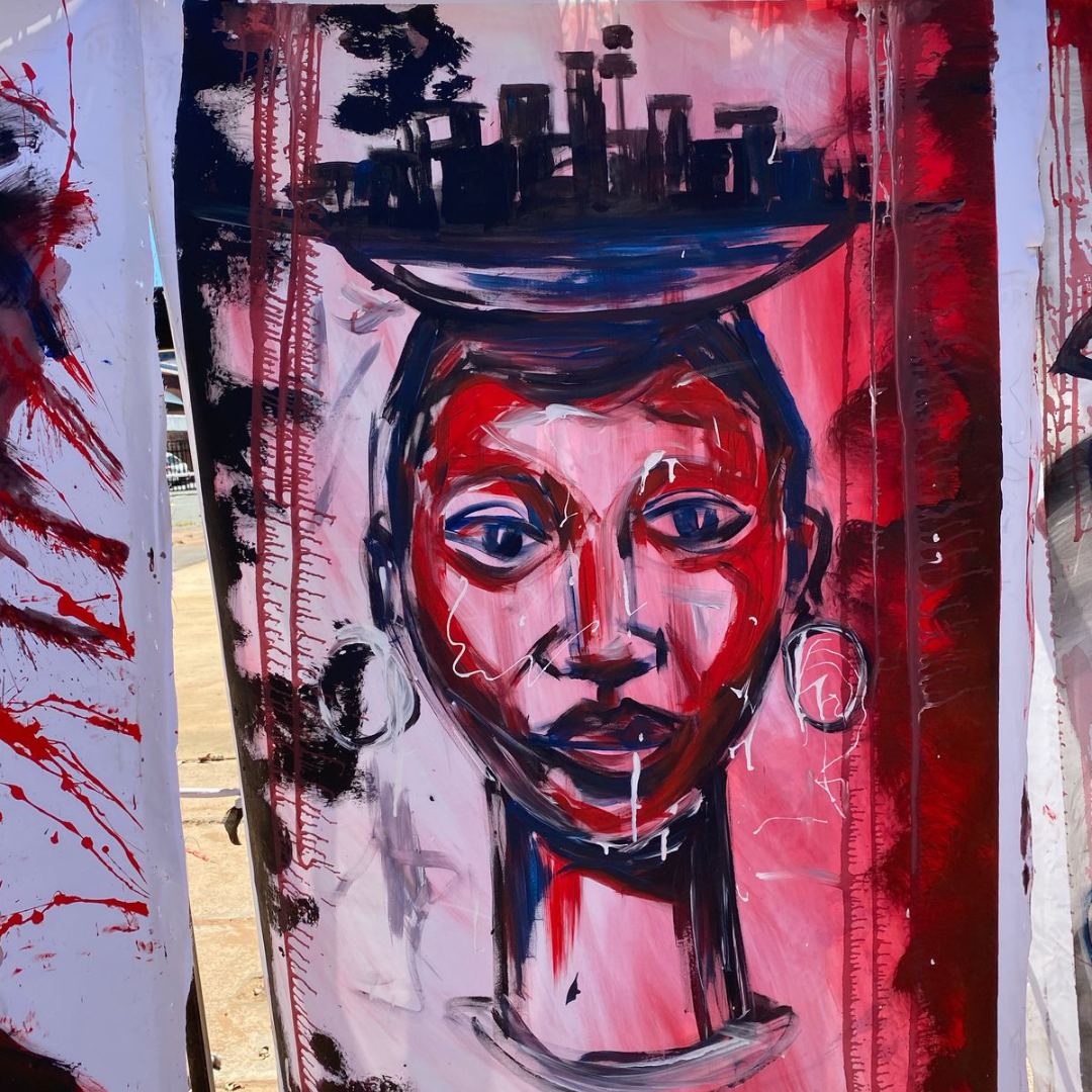“Urban Essence” is a bold, expressive artwork capturing the resilience and spirit of African city life. The striking portrait of a woman, painted in deep reds, blacks, and whites, symbolizes strength and tradition, while the city skyline atop her head represents modern urban ambition. This powerful fusion of culture and progress makes “Urban Essence” a statement piece for any contemporary space.