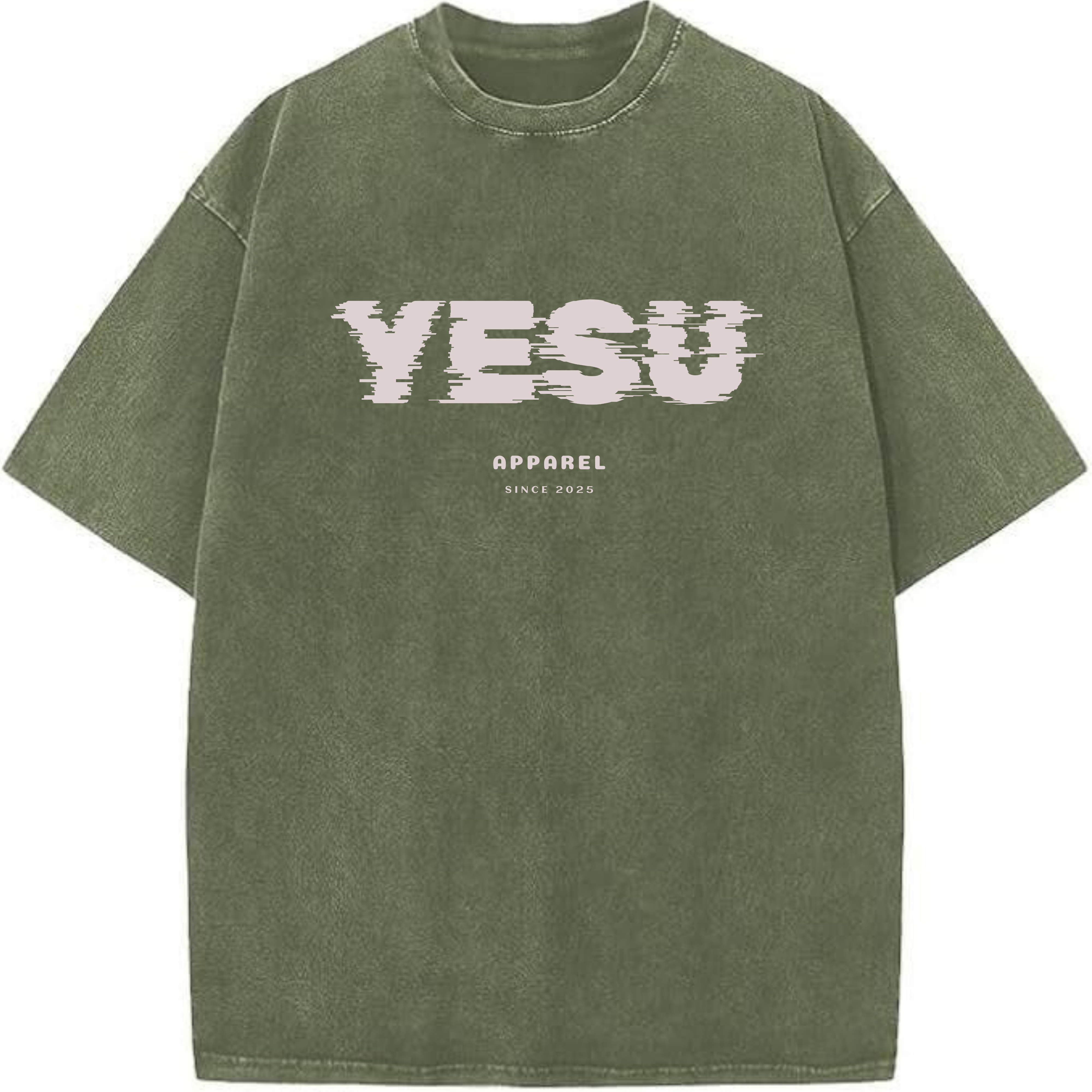 YESU Vintage Washed Oversized Tee – Olive Green Edition